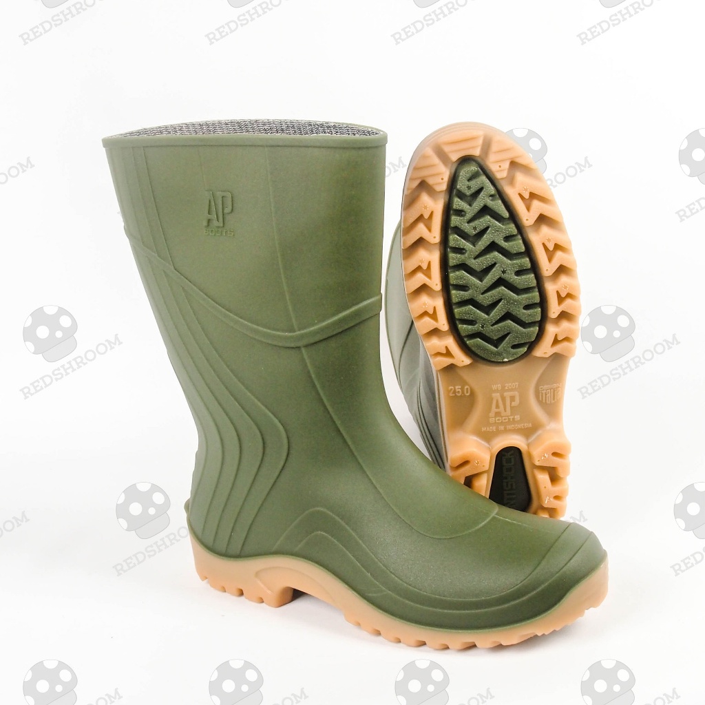 Sepatu Boot Pendek AP 2007 AP Boots Hijau Karet Lokal Anti Air & Slip Perkebunan Pertanian