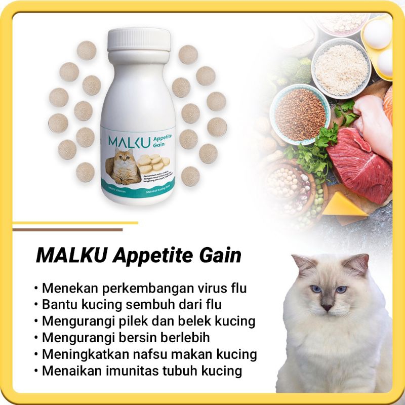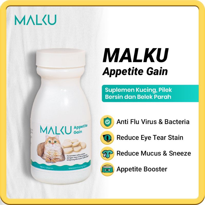 MALKU APPETITE GAIN DISTRIBUTOR RESMI VITAMIN KUCING NAFSU MAKAN KUCING DAYA TAHAN TUBUH FLU KUCING BELEK PENCERNAAN