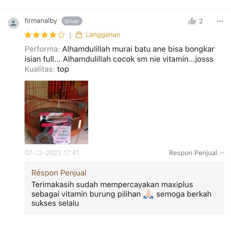 Maxiplus, Vitamin Burung Kicau Gacor Garansi 100 PERSEN
