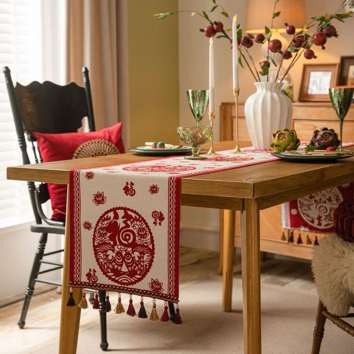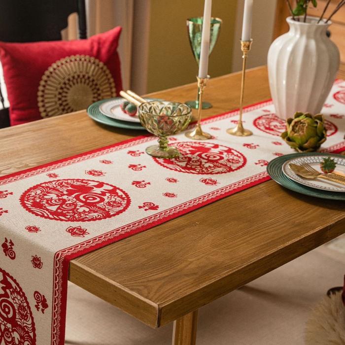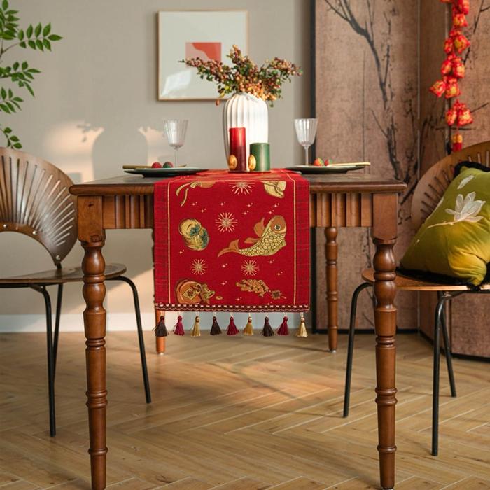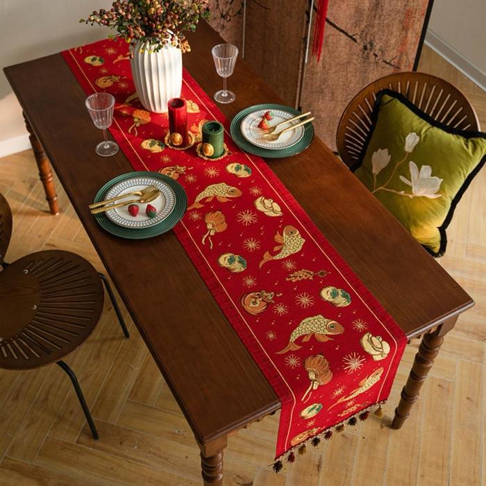 TABLE RUNNER AESTHETIC | TAPLAK MEJA ESTETIK MOTIF FORTUNE - IKAN KOI, 35X160CM