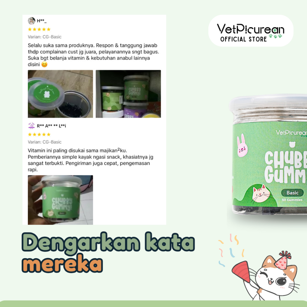 Vetpicurean Chubby Gummy Basic | Vitamin Anjing Kucing Superfood untuk Imun - Suplemen Penggemuk