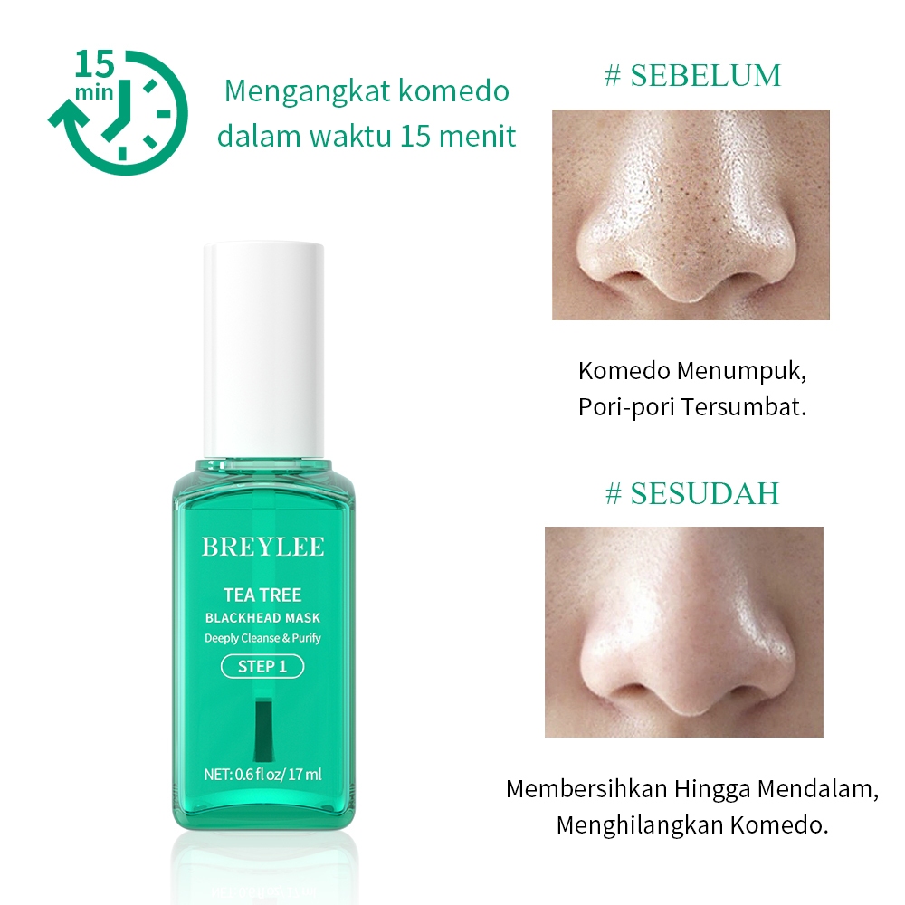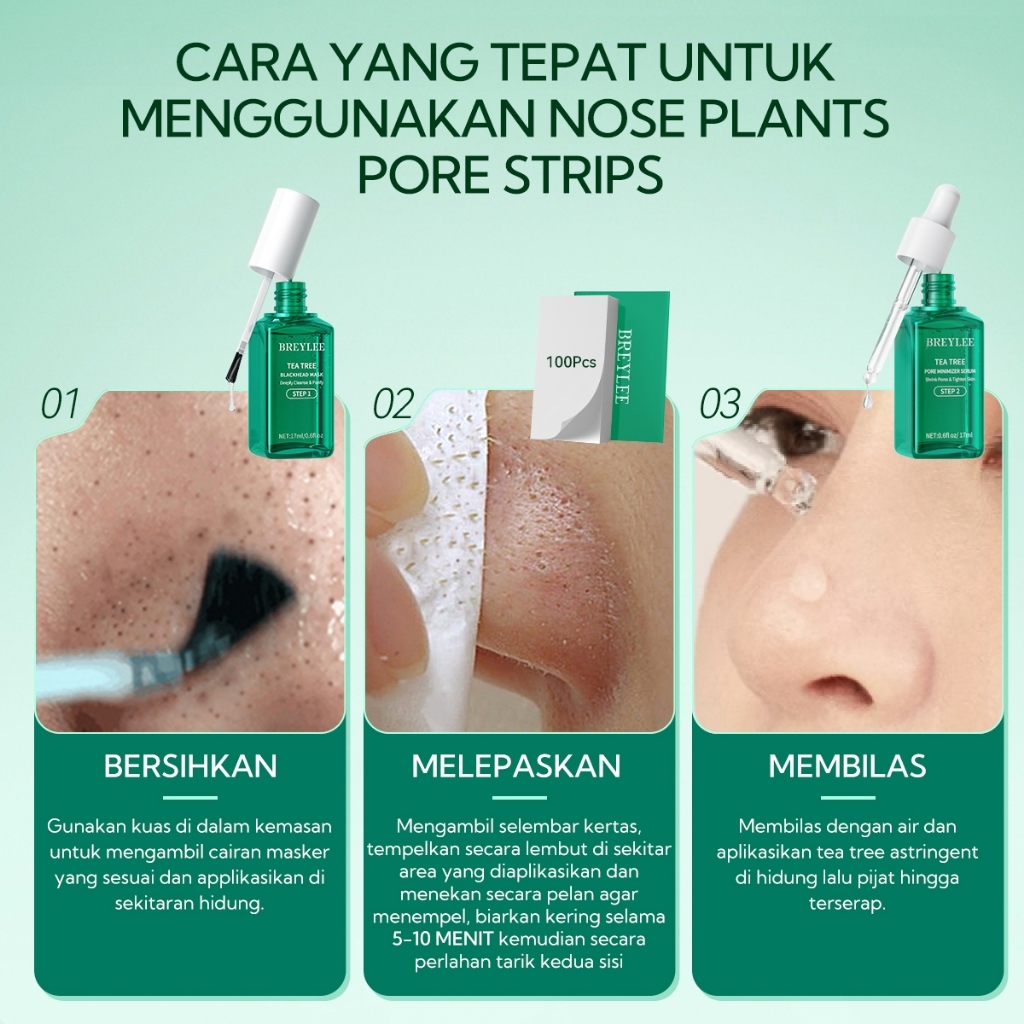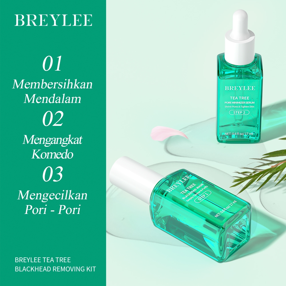 BREYLEE Tea Tree Blackhead Mask & Pore Minimizer Serum - Masker Komedo Hidung Pengangkat Komedo 17ml+100pcs(DALAM BOX)