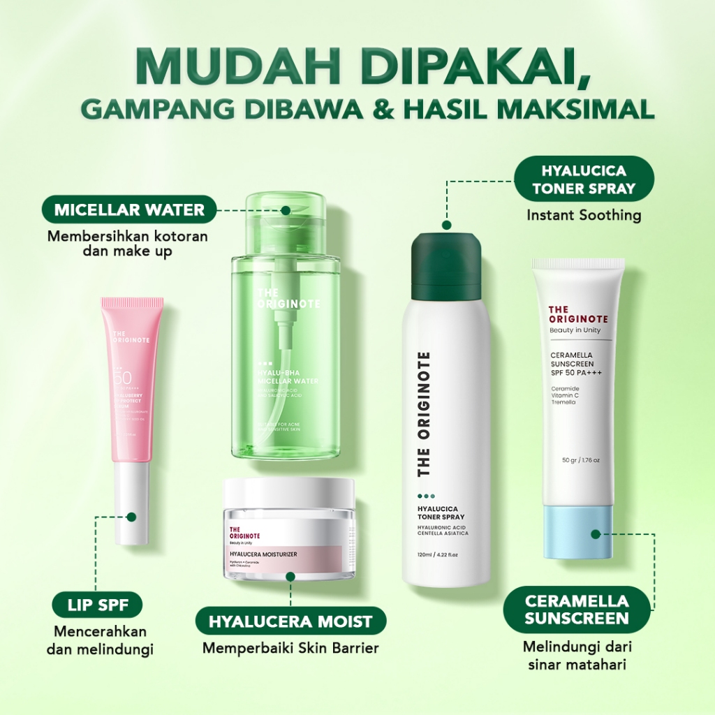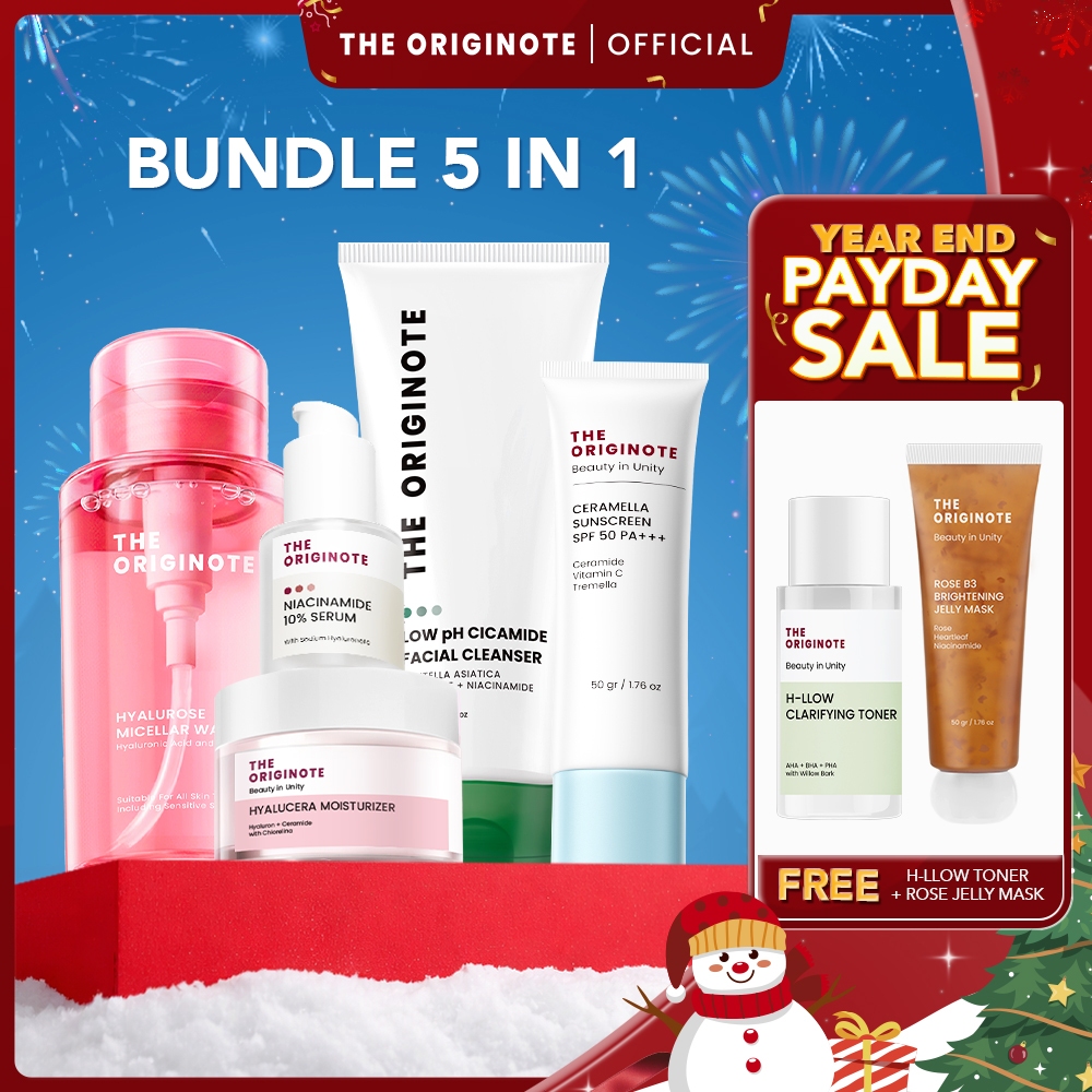 The Originote Special Bundle 5in1 | Skincare Set Micellar Water Facial Wash Moisturizer Sunscreen Serum Paket Perawatan