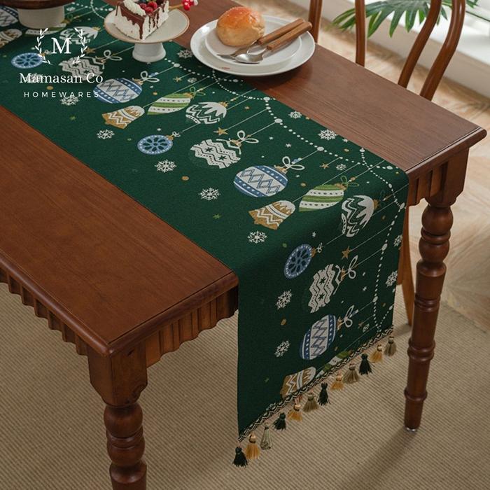 CHRISTMAS TABLE RUNNER DECORATION 180 CM & 240 CM | TAPLAK MEJA NATAL XMAS CMH0050 - GREEN, SIZE 180X35 CM