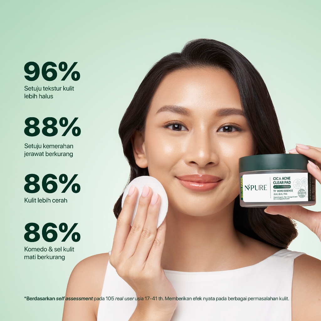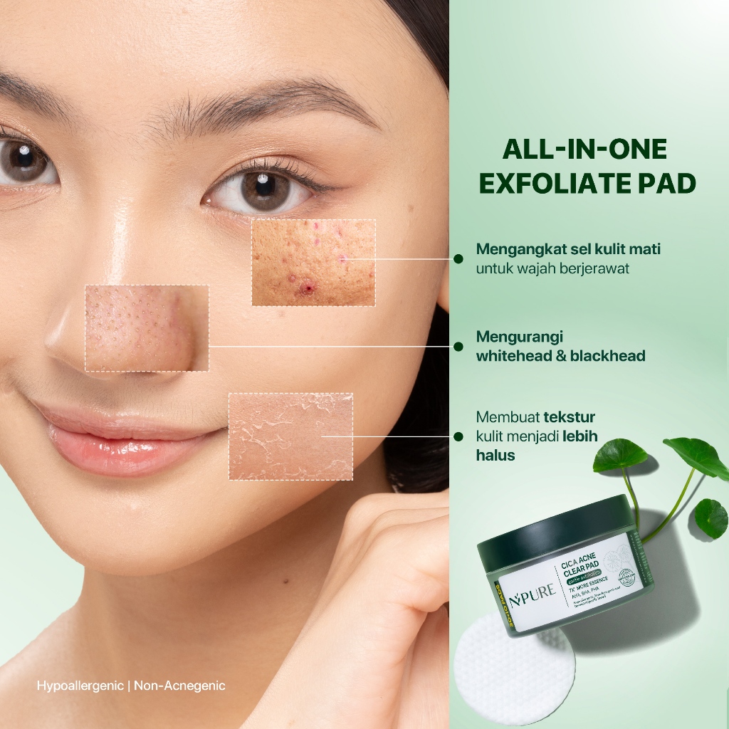 NPURE Gentle Exfoliation Pad / Acne Clear Pad Cica / Kapas Eksfoliasi Kulit Jerawat / Acne Exfoliating Pad (40 pads) Aci