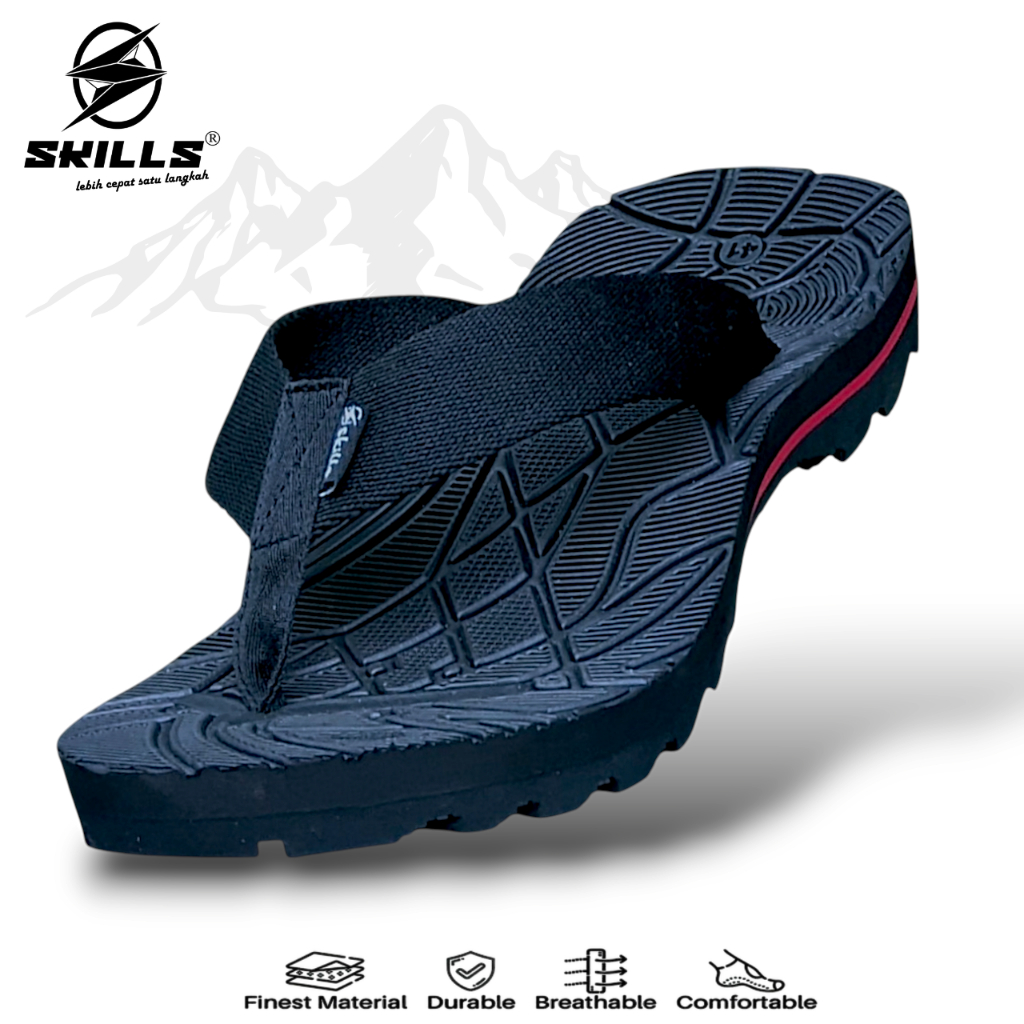 SKILLS Barqun Sakti - Sandal Gunung Pria | Sandal Pria Casual Jepit Gunung Black Army Original
