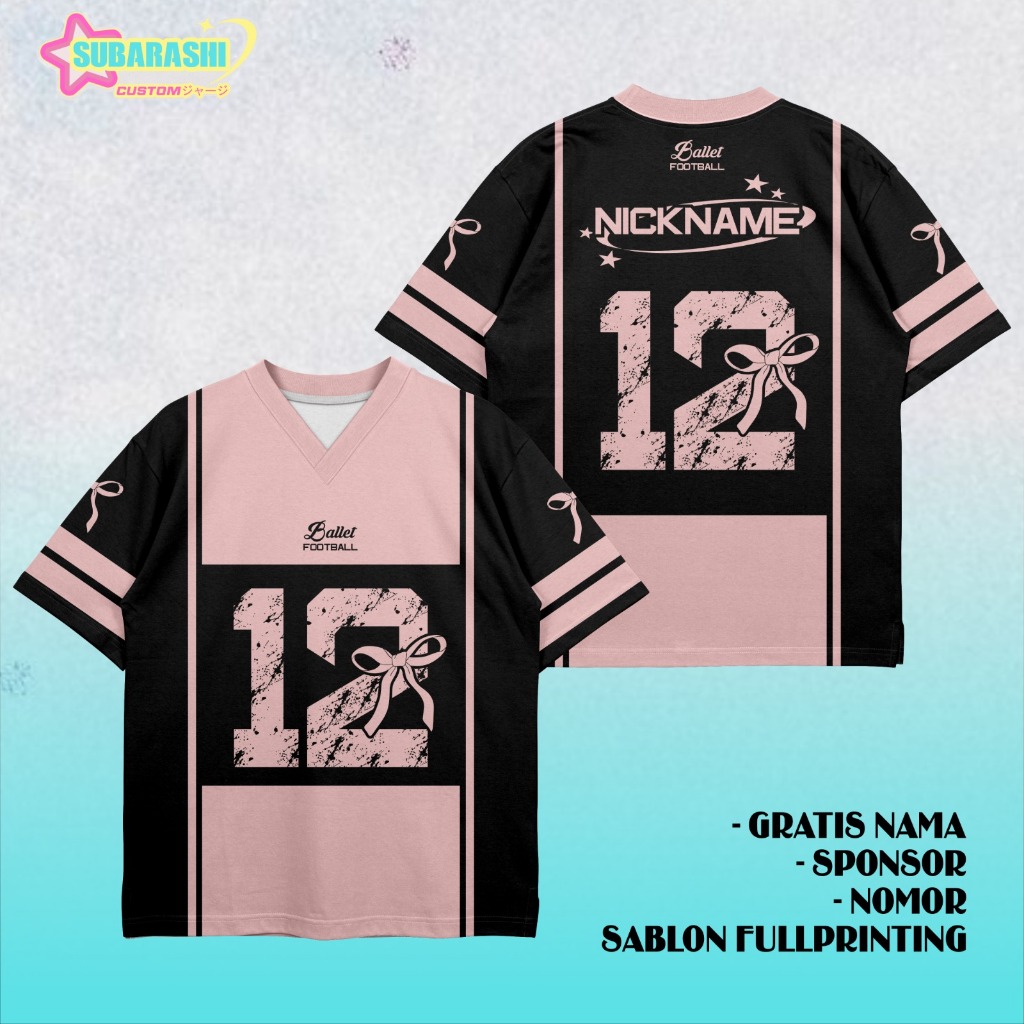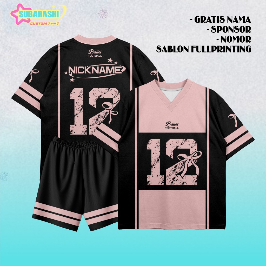 Jersey/Baju Custom Nama Dan Nomor Oversize BALLET FOOTBALL Pink Hitam Cowok/Cewek, Dan Anak-Anak, Sepak Bole, Futsal, Badminton,Volly Ball Tennis, Basseball, Rugby