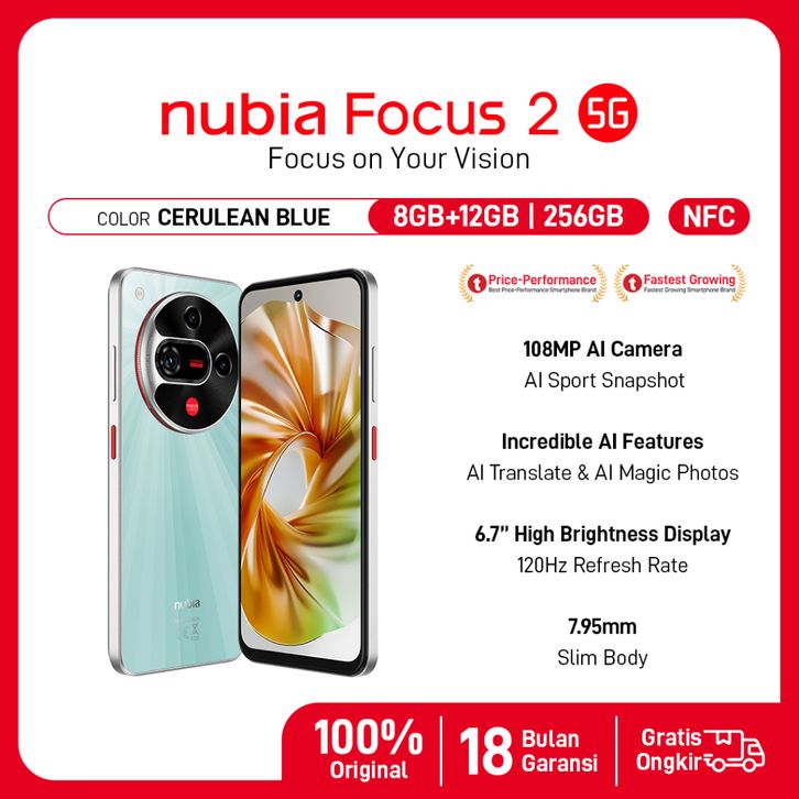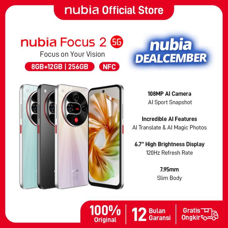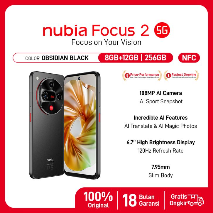 nubia Focus 2 5G ROM 256GB RAM 20 GB (8+12 GB) Smartphone Kamera AI 108 MP Layar 6.7" 120Hz, Baterai 5000 mAH