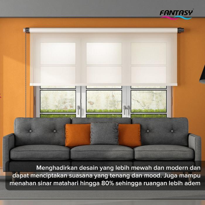 FANTASY ROLLER BLINDS SUN SCREEN 150 X 160 CM ROLLER BLIND TIRAI GULUNG JENDELA MINIMALIS MODERN TEMBUS PANDANG - BEIGE