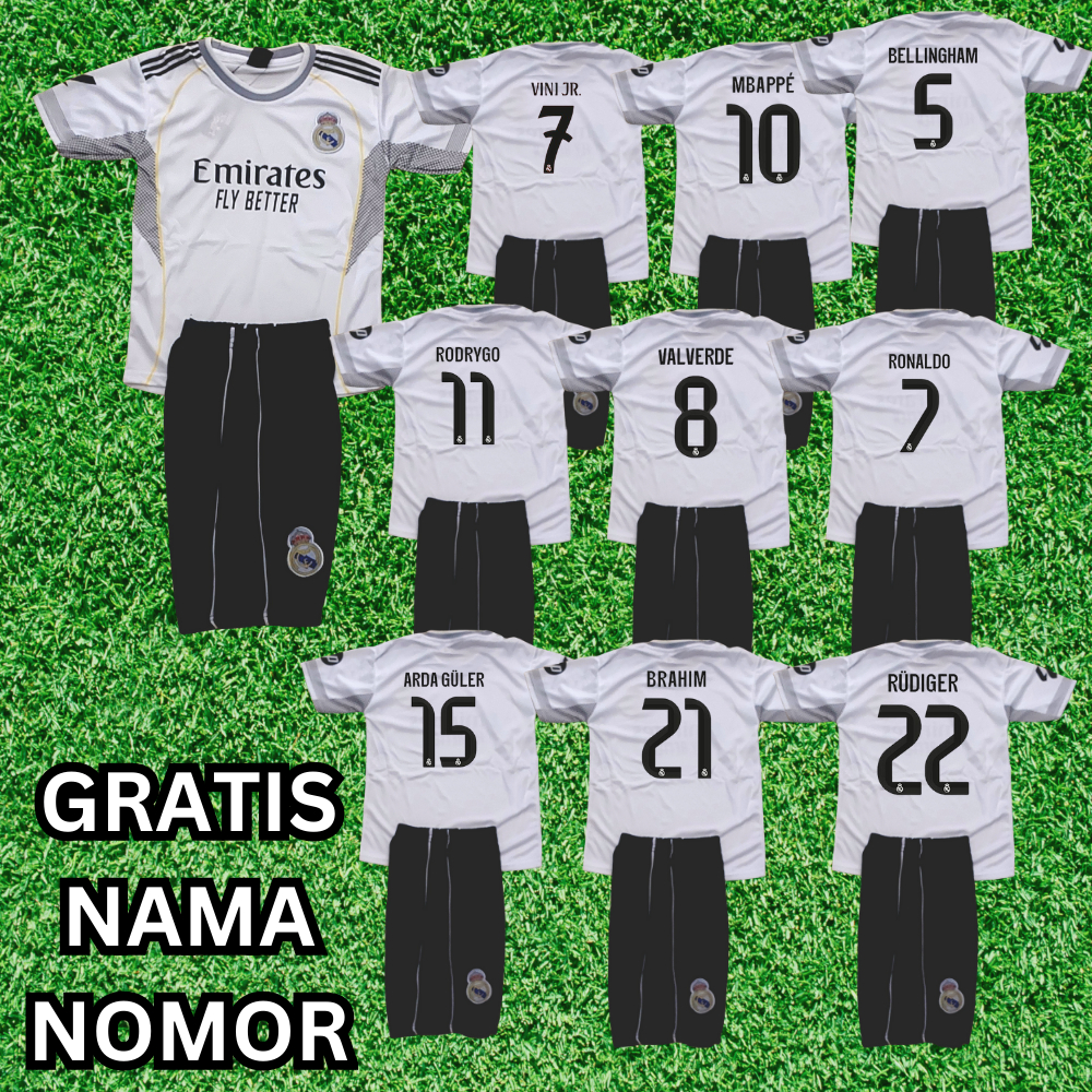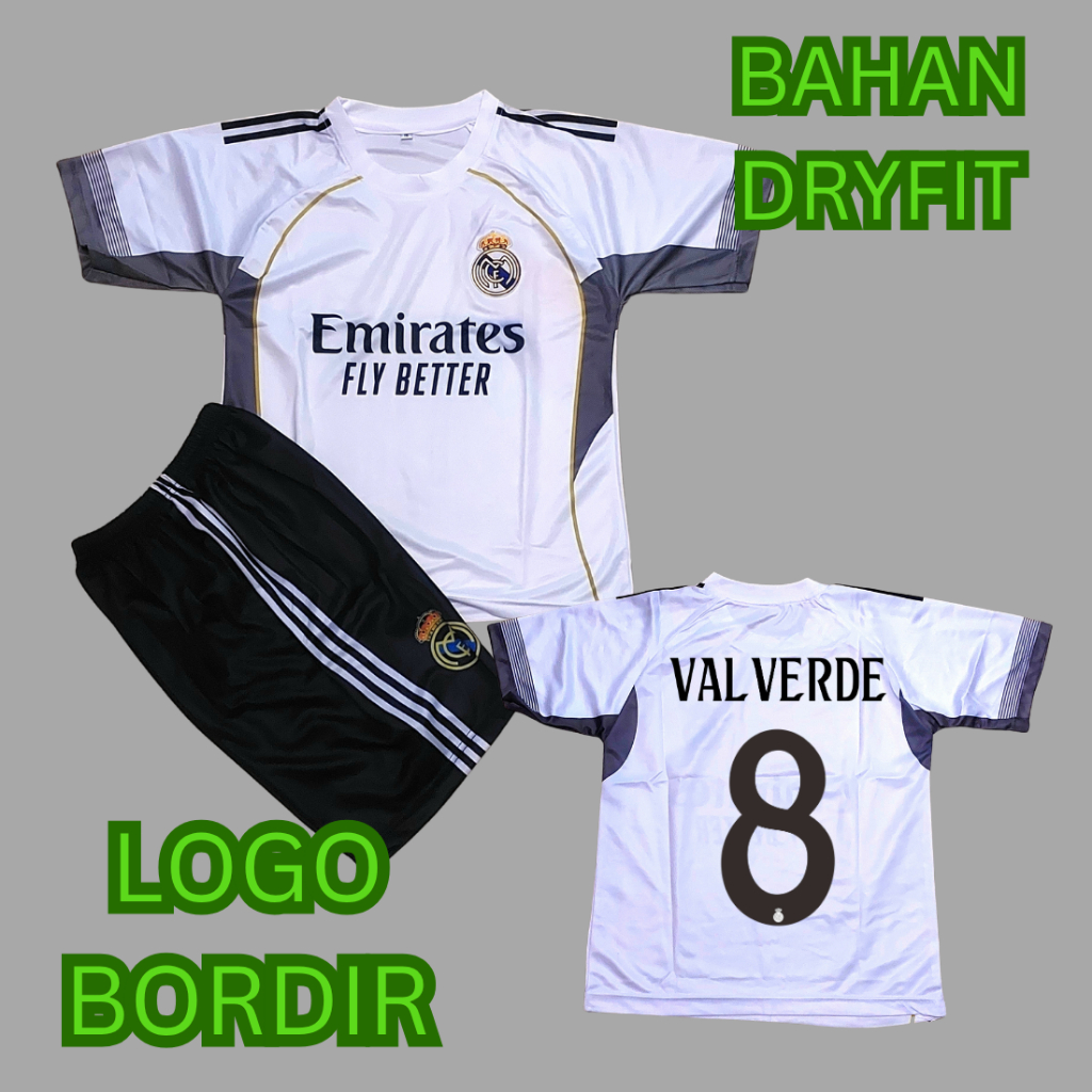 SETELAN BAJU BOLA ANAK MADRID PTH USIA1-12THN BAHAN DRY-FIT