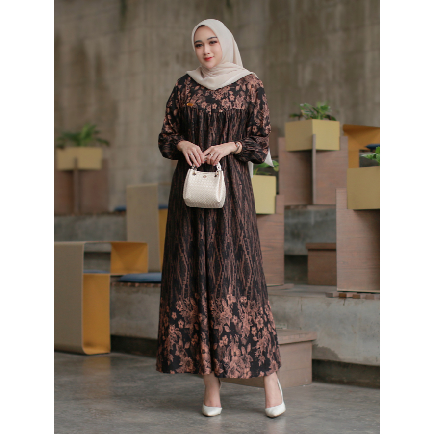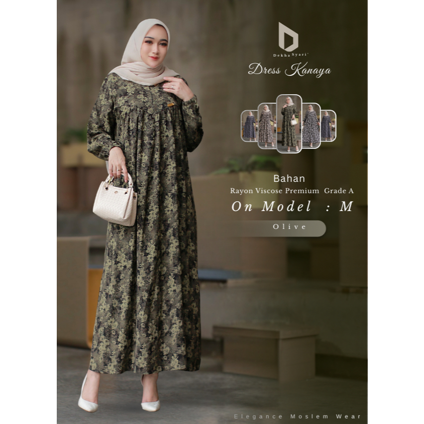 Dekha Syari Dress Gamis Ibu Ibu Bahan Rayon Viscose Motif Premium Mewah Elegan Lebaran Terbaru 2025