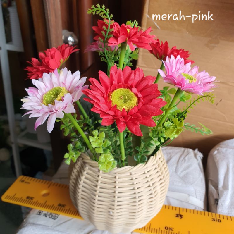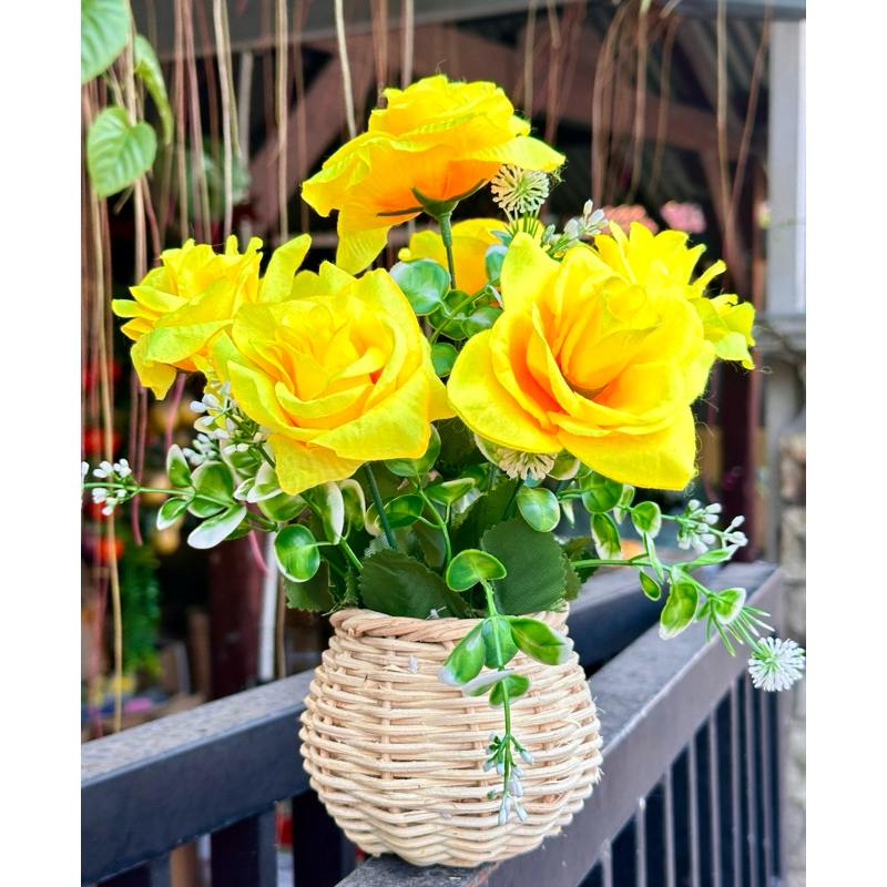 Bunga Matahari + Vas Rotan Besar