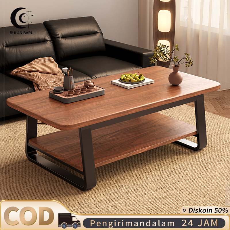 Meja Ruang Tamu Minimalis Meja Kopi Besi Meja Kopi kayu Meja Tamu Minimalis Modern Coffee Table Meja Kopi Teh 2 Tingkat Veneer Kayu Mewah 100cm 80cm