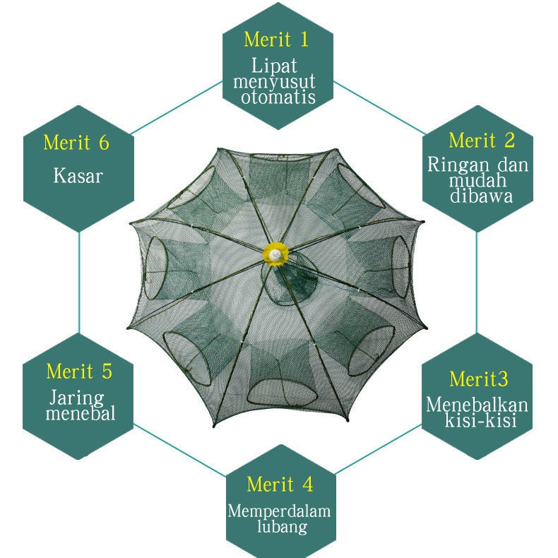 Phoenix Perangkap Bubu Payung 4-16 Lubang Alat Jaring Pancing Jala Ikan Udang Kepiting Lele Lobster Sungai Laut Danau Fi