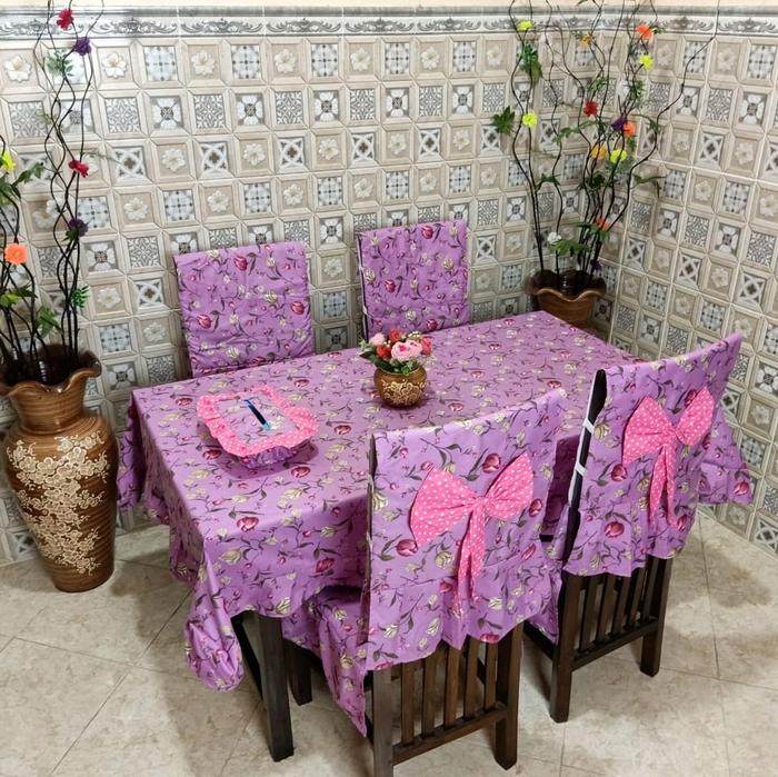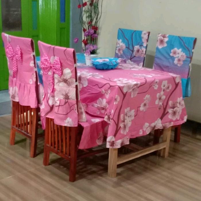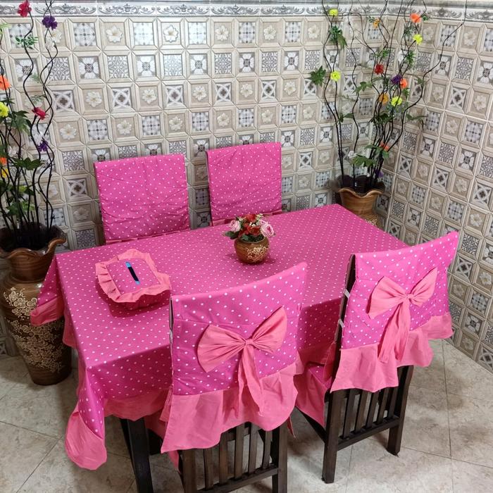 COVER TAPLAK MEJA SET KURSI 4 WARNA PINK POLCA KATUN - PINK POLCA, KURSI 4