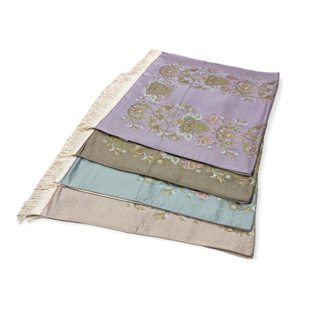 [] Sajadah Turki Sajadah Bordir Seserahan Bahan Silk Satin Premium Motif Bunga Import 70x120cm