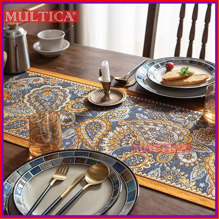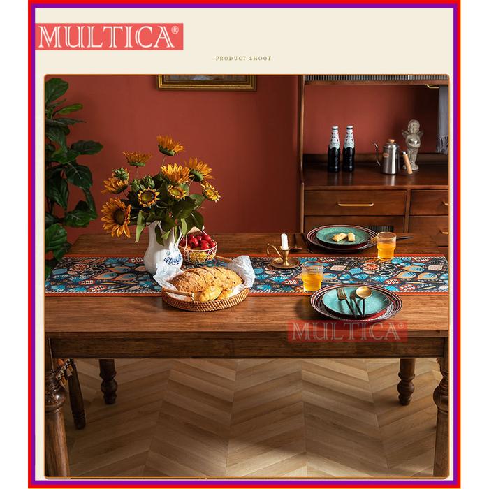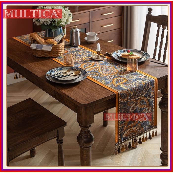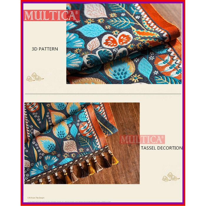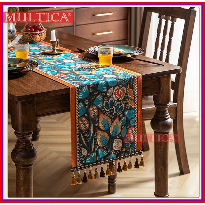 MULTICA TABLE RUNNER TAPLAK MEJA VINTAGE AMERIKA RUMBAI JACQUARD GAYA ETNIK / TAPLAK MEJA POLIESTER RUMAH TANGGA DECOR PARTY - H-BIRU, 35X260CM
