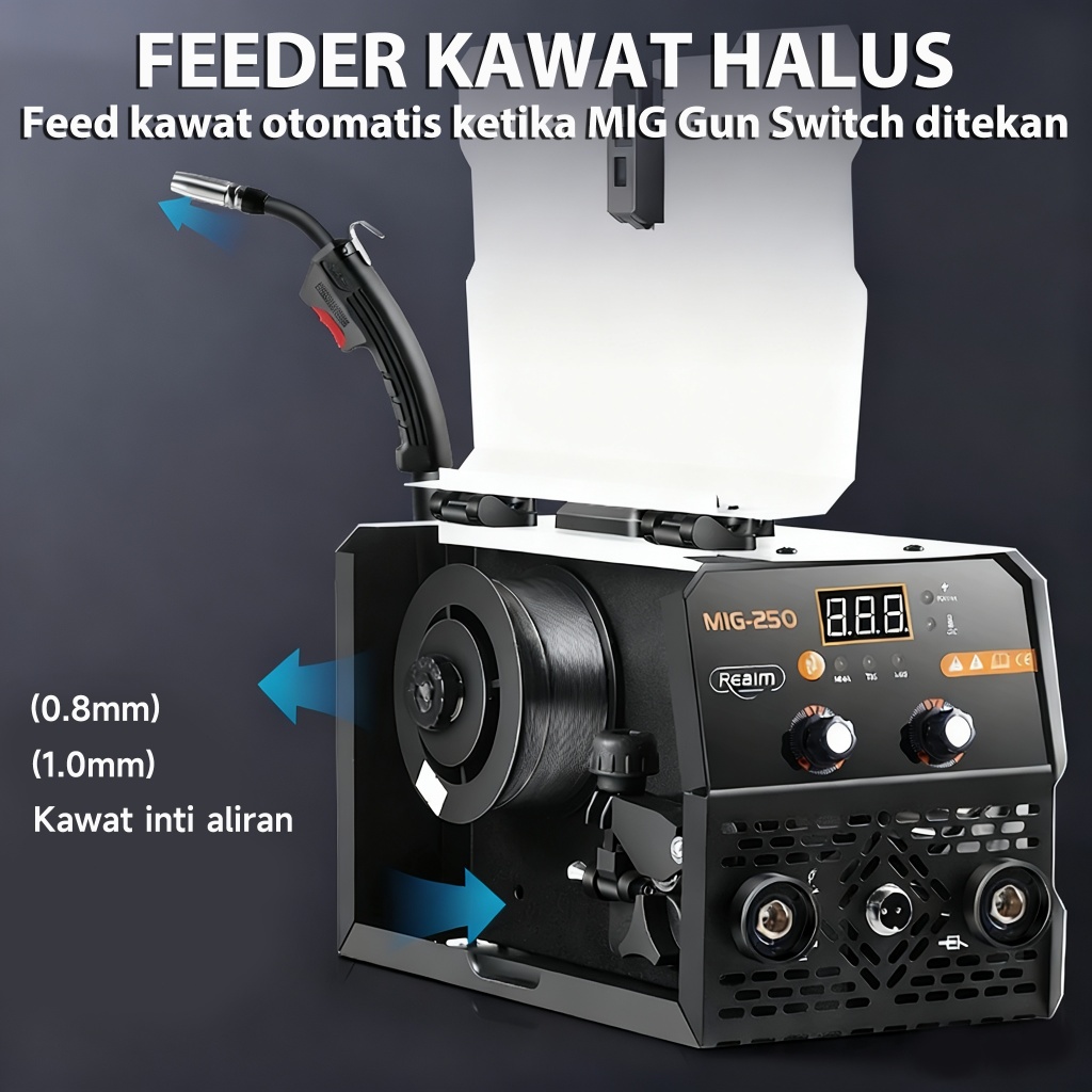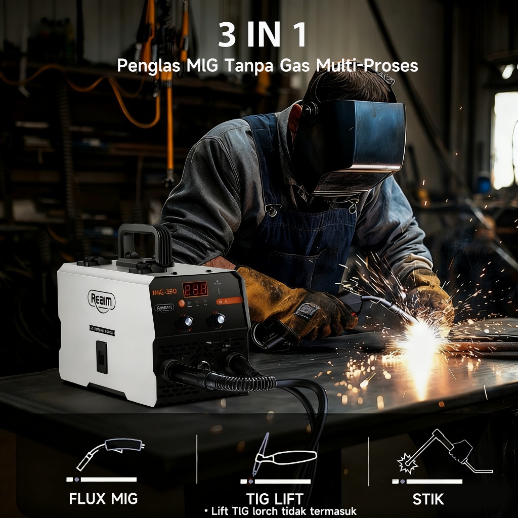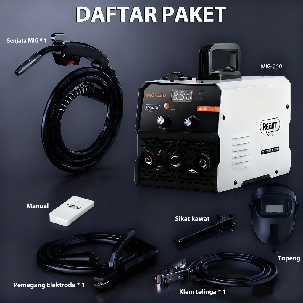Reaim Mesin Las MIG Inverter 450W IGBT - Welding Machine Portable untuk Besi, Baja & Stainless