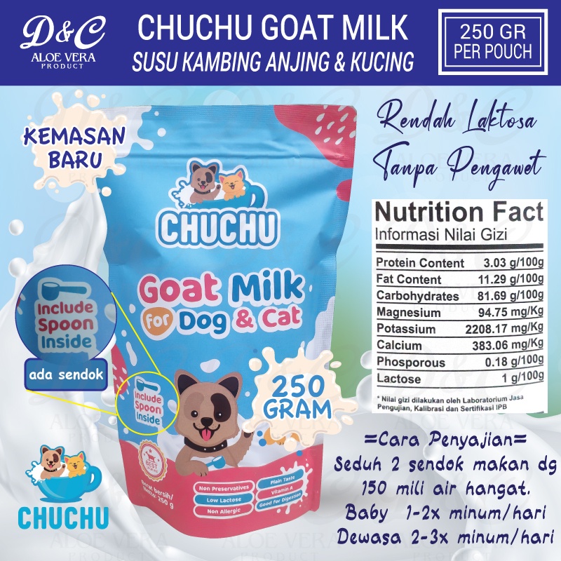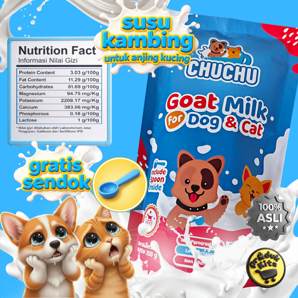 CHUCHU Susu Kambing Anjing & Kucing 250Gr Rendah Laktosa Bebas Pengawet Kaya Vitamin A Untuk Pencernaan Dan Kesehatan Bu