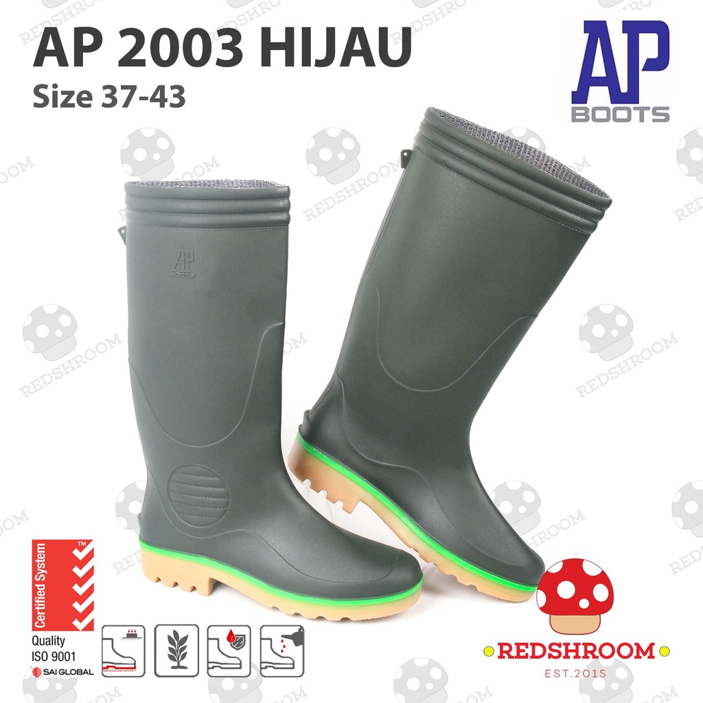 Sepatu Boots Tinggi AP 2003 AP Boots Hijau Tua Karet Lokal Anti Air & Slip Tricolor Perkebunan