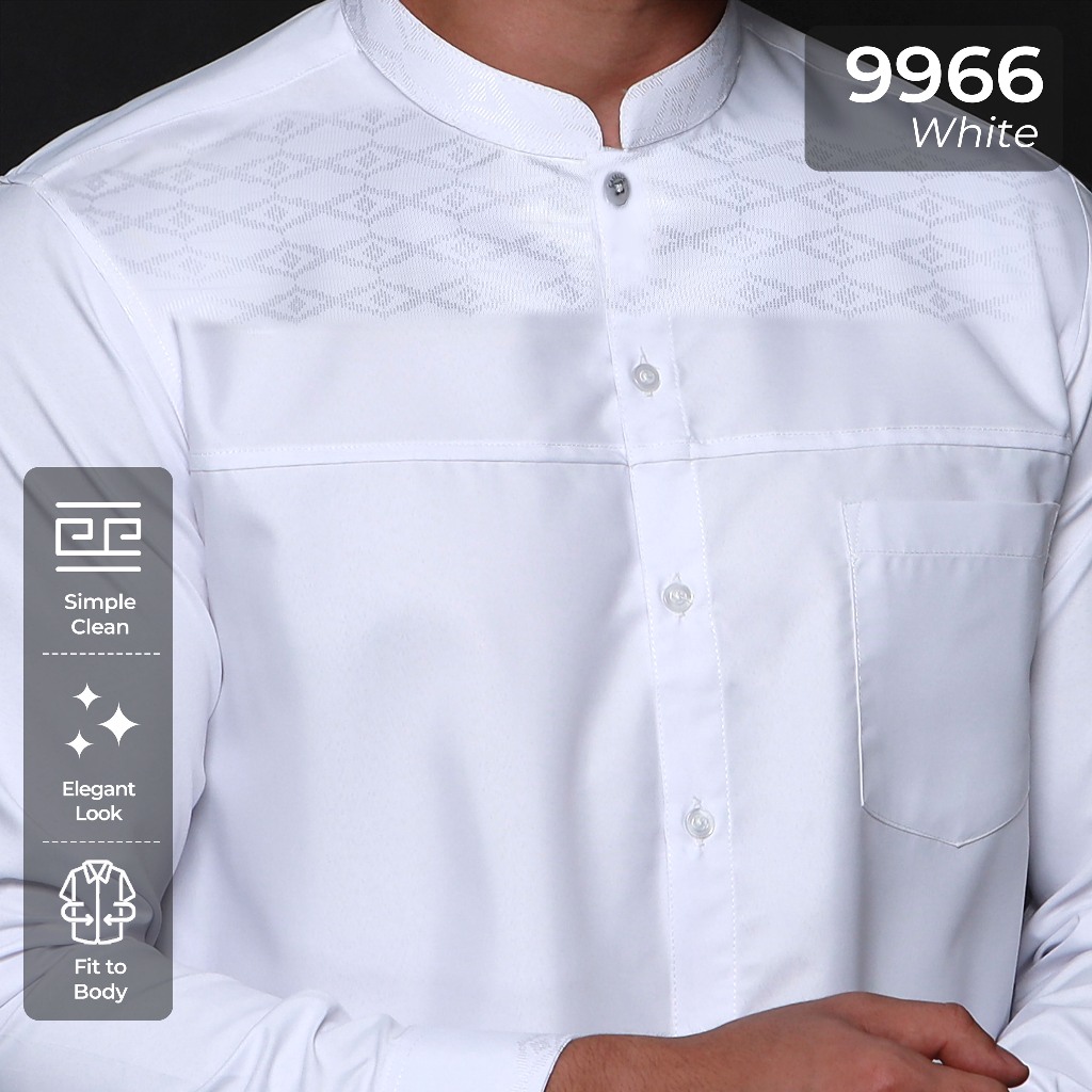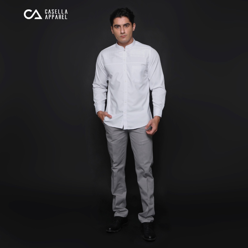Casella Baju Koko Pria Lengan Panjang Horizontal White | Baju Koko Putih Ismail