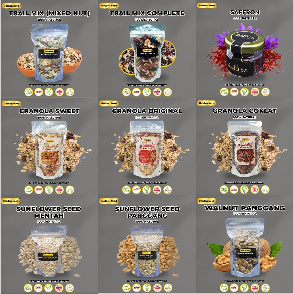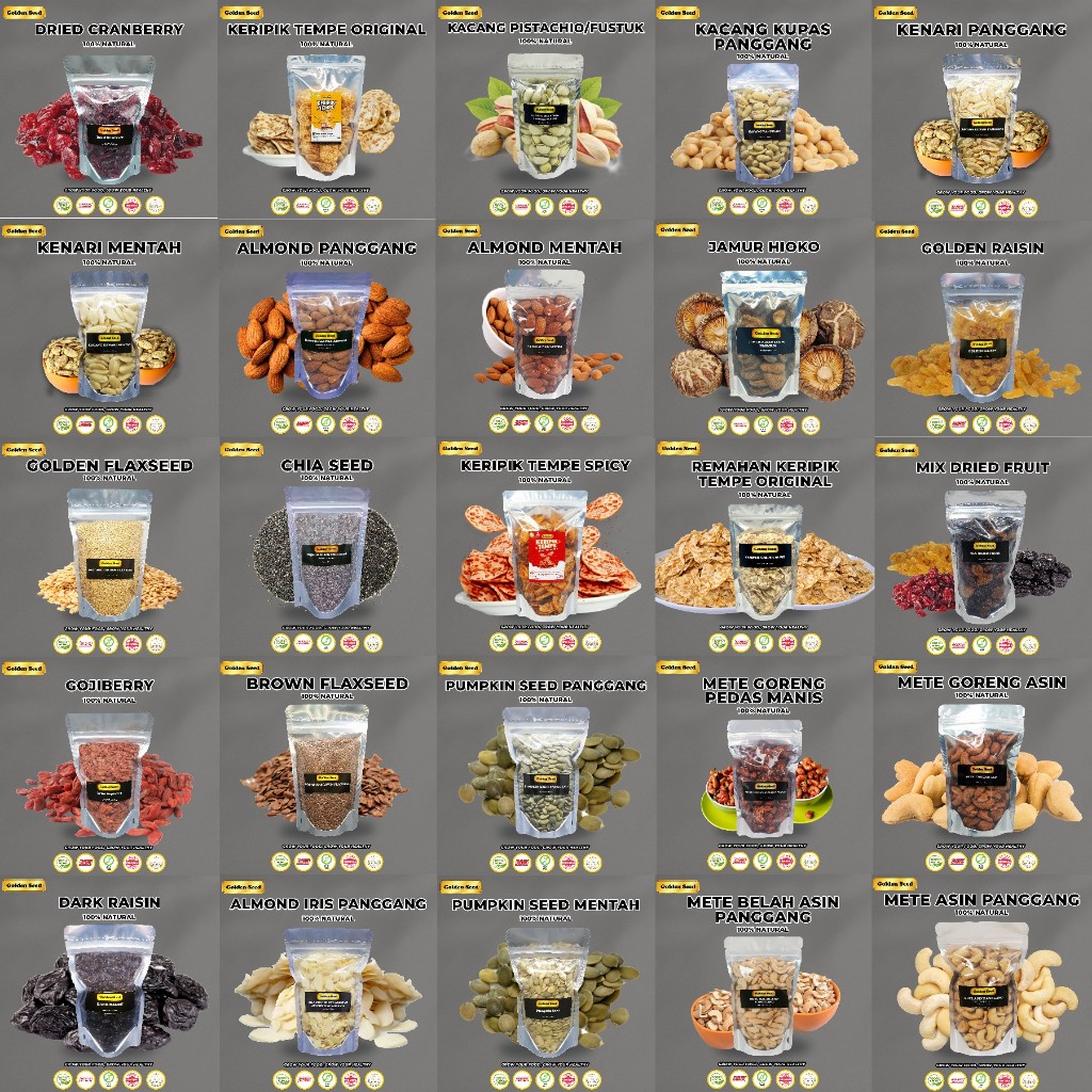 Kacang Almond / Mede / Pistachio / Kacang Panggang / Kismis Hitam / Kismis Kuning / Cranberry / Chiaseed / Brown Flaxsee