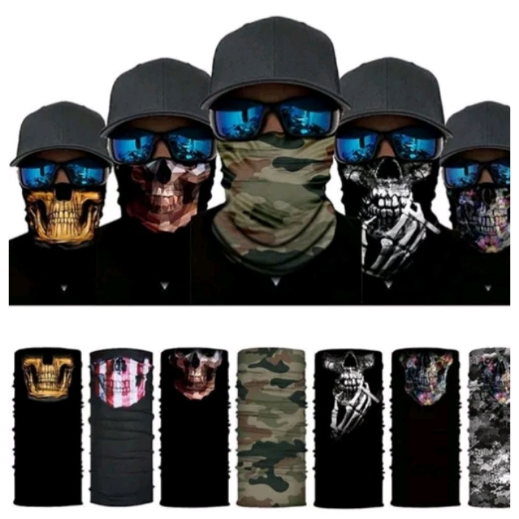 Selusin ( 12 Pcs ) Masker Baff Import Hitam Dan Motif | Masker Bandana Multifungsi