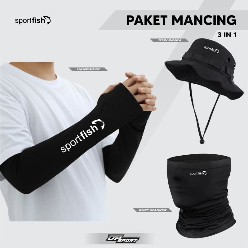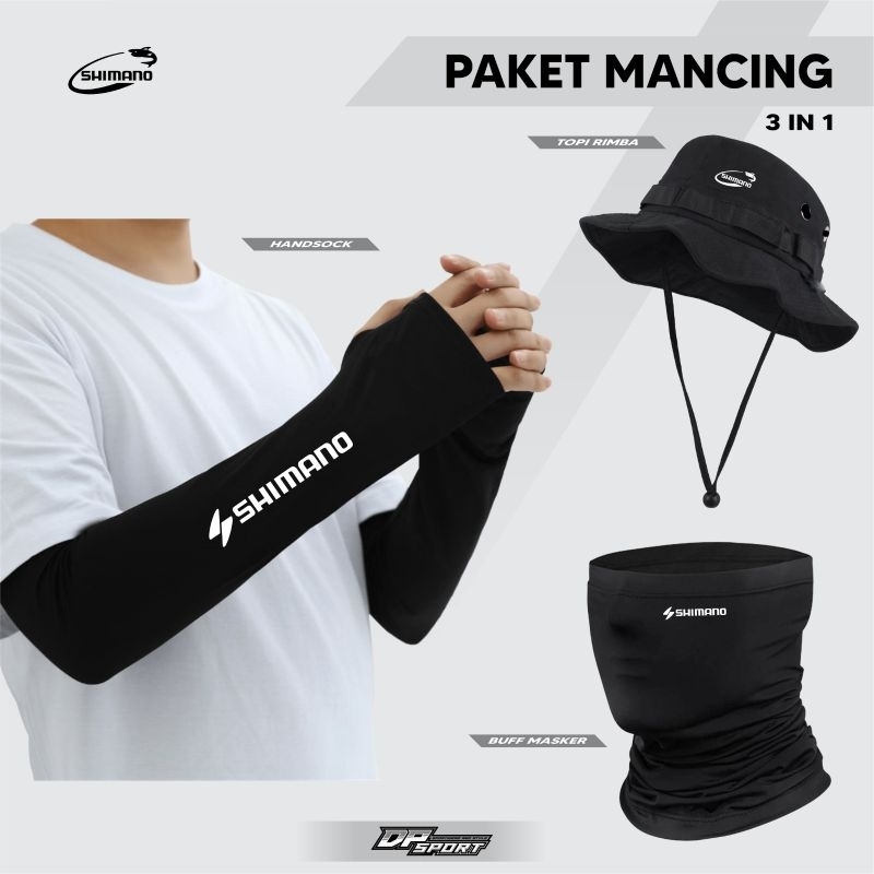 Paket 3 In 1 Topi Motif Rimba Buff Masker Mancing Melar Dan Handshock Lubang Jempol Termurah Berkualitas