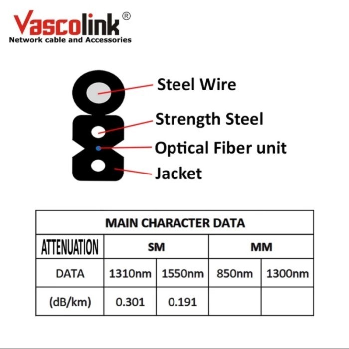 FLASH SALE Kabel Fiber Optik FO 1Core 2 Core 4 Core 3 Sling Baja Outdoor 1000 Meter Vascolink