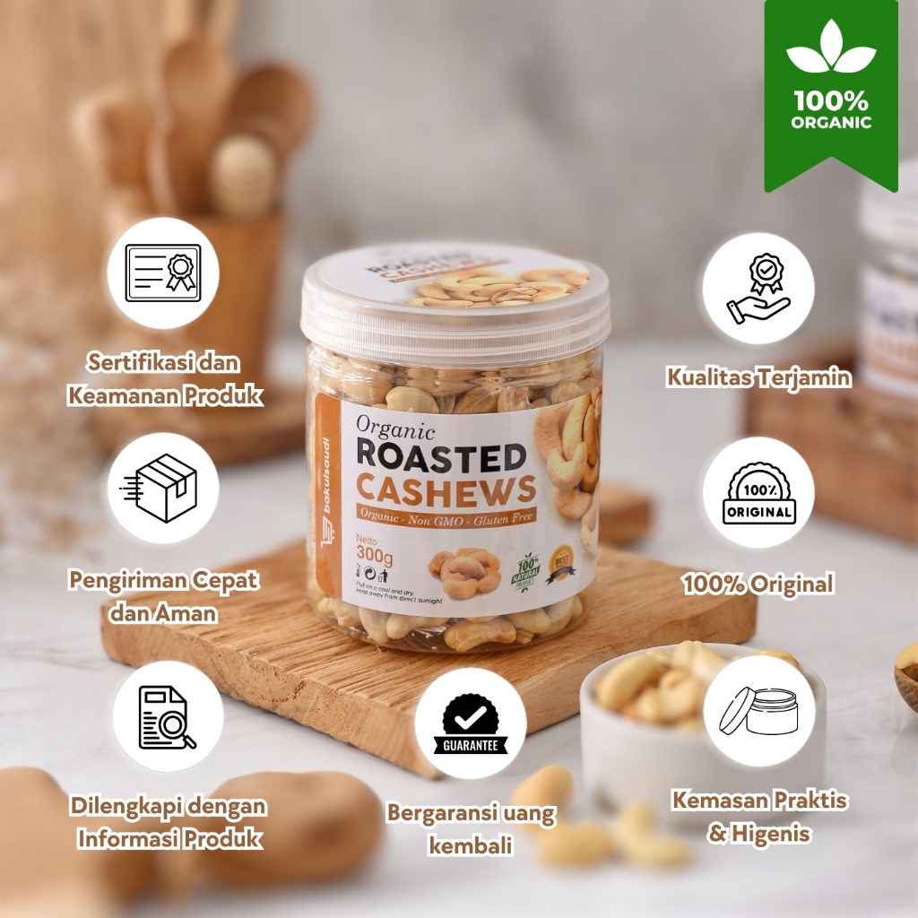 Kacang Mede Premium Panggang Organik Utuh Renyah Oven Roasted Cashew Nut Organic Matang Mente Mete