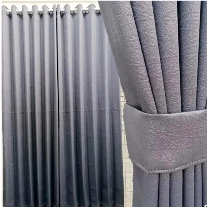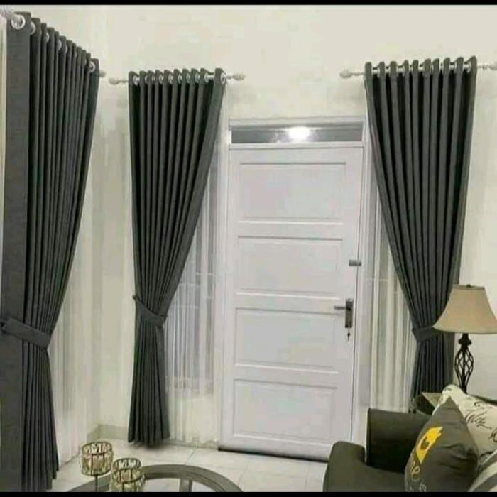 GORDEN BLACKOUT PREMIUM 12 GELOMBANG 24 LUBANG RING SMOKRING L200XT300CM L200XT250CM L200XT200CM KORDEN JENDELA MINIMALIS ABU BENANG KAIN SILVER TALI PINTU HITAM COKLAT - ABU TUA, L200XT200CM
