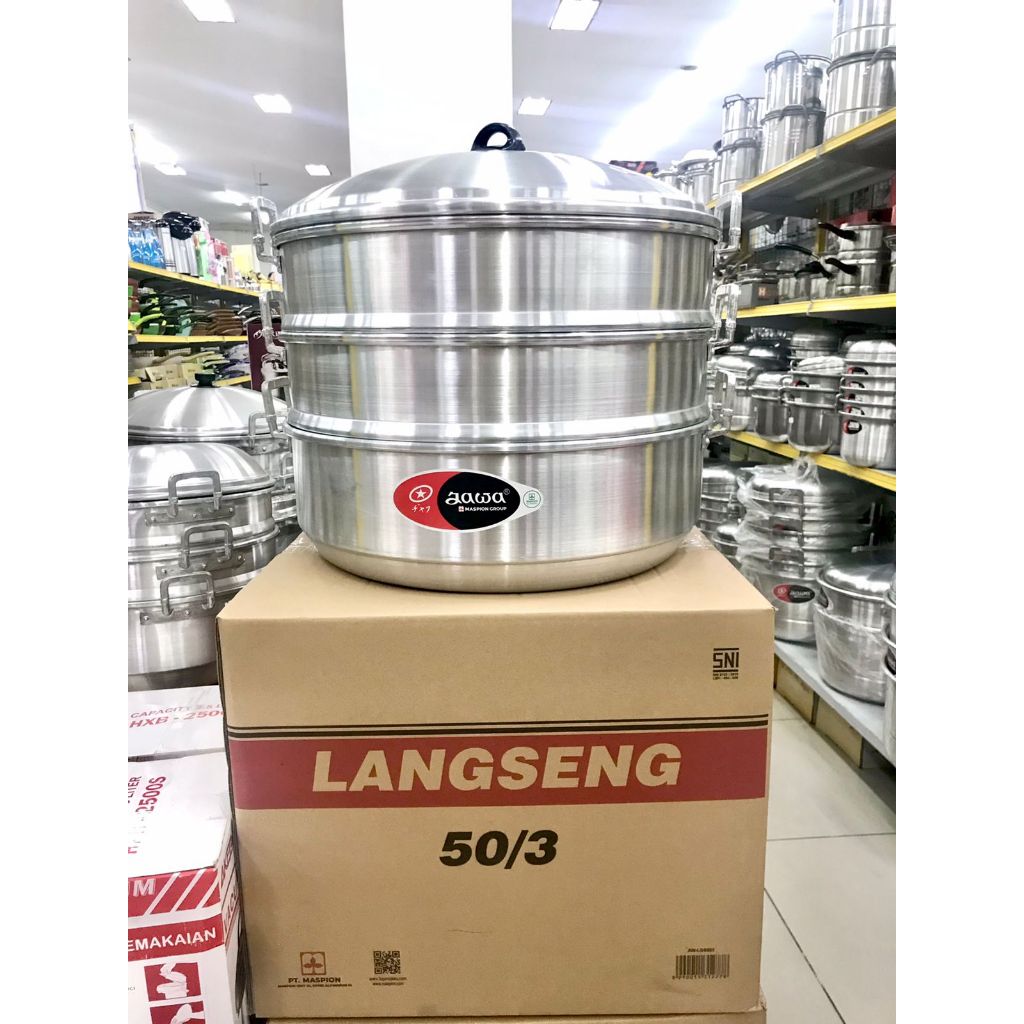 Jawa Langseng/panci kukusan aluminium ukuran 50cm,40cm,33cm susun 3