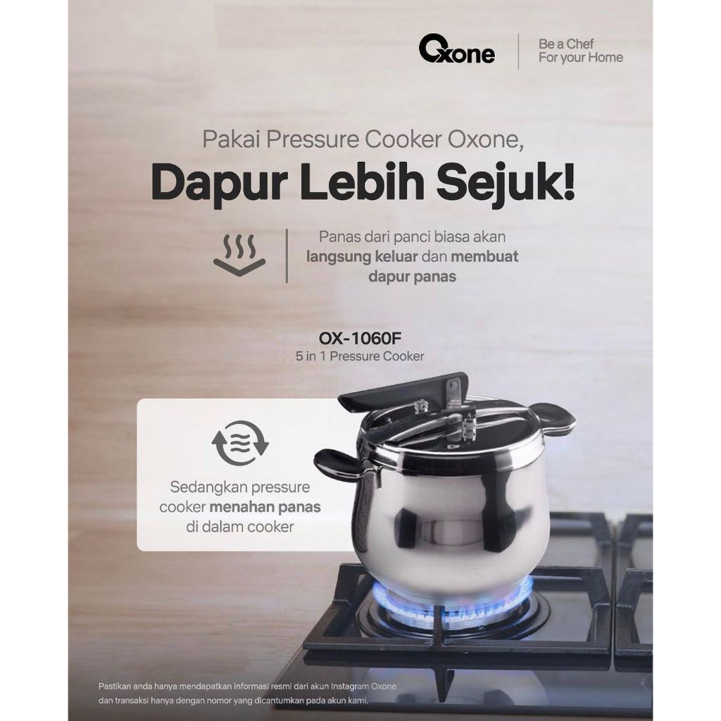 Oxone OX1060F Presto Panci Pressure Cooker 5 in 1 6L Stainless
