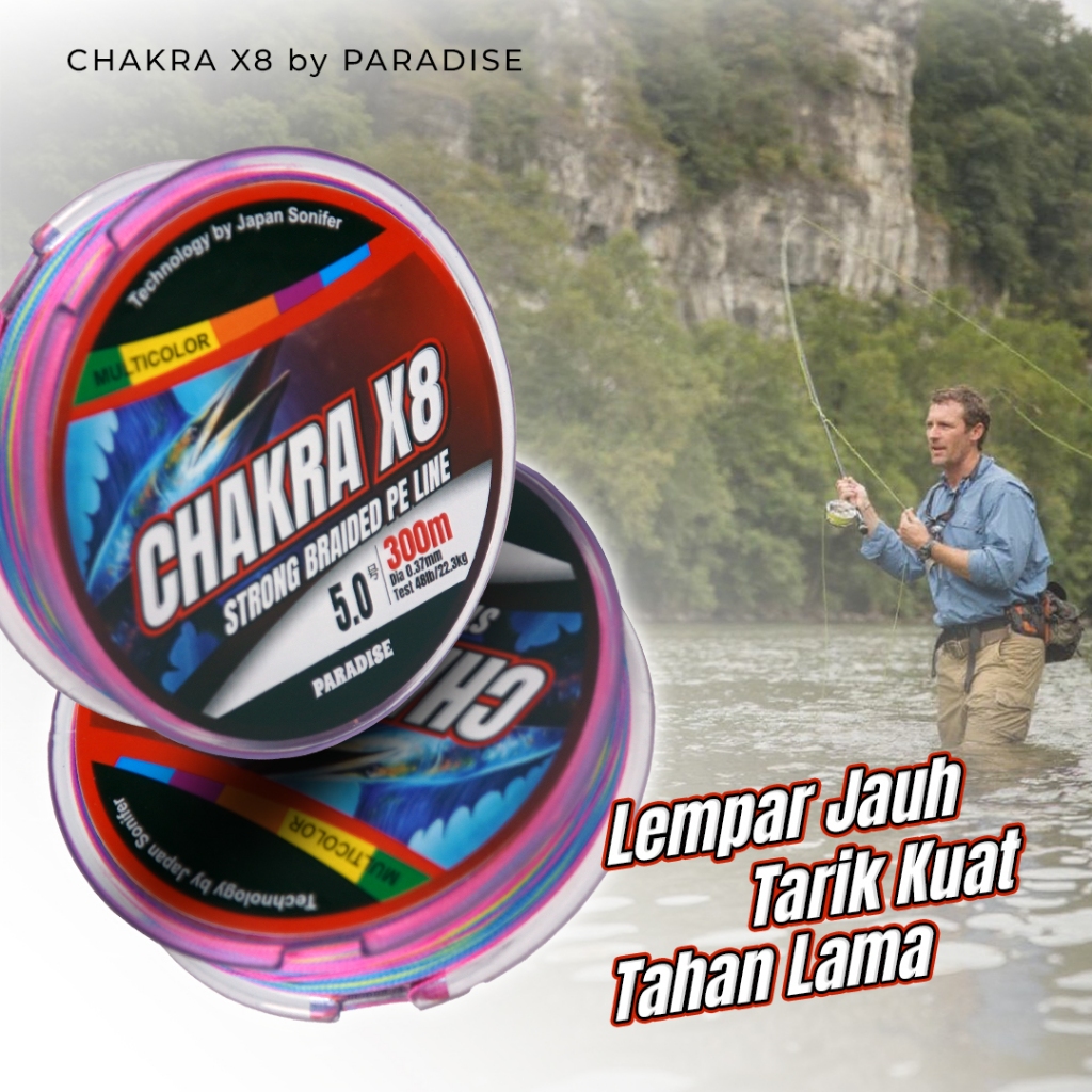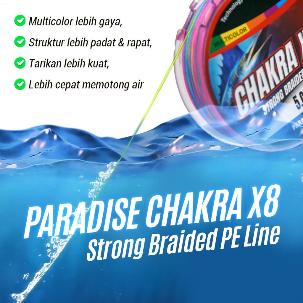 Pe Paradise Senar Pe Chakra X8 150M-300M Multi Color – Kuat, Licin, Anti Keriting, Tahan Tarikan & Gesekan