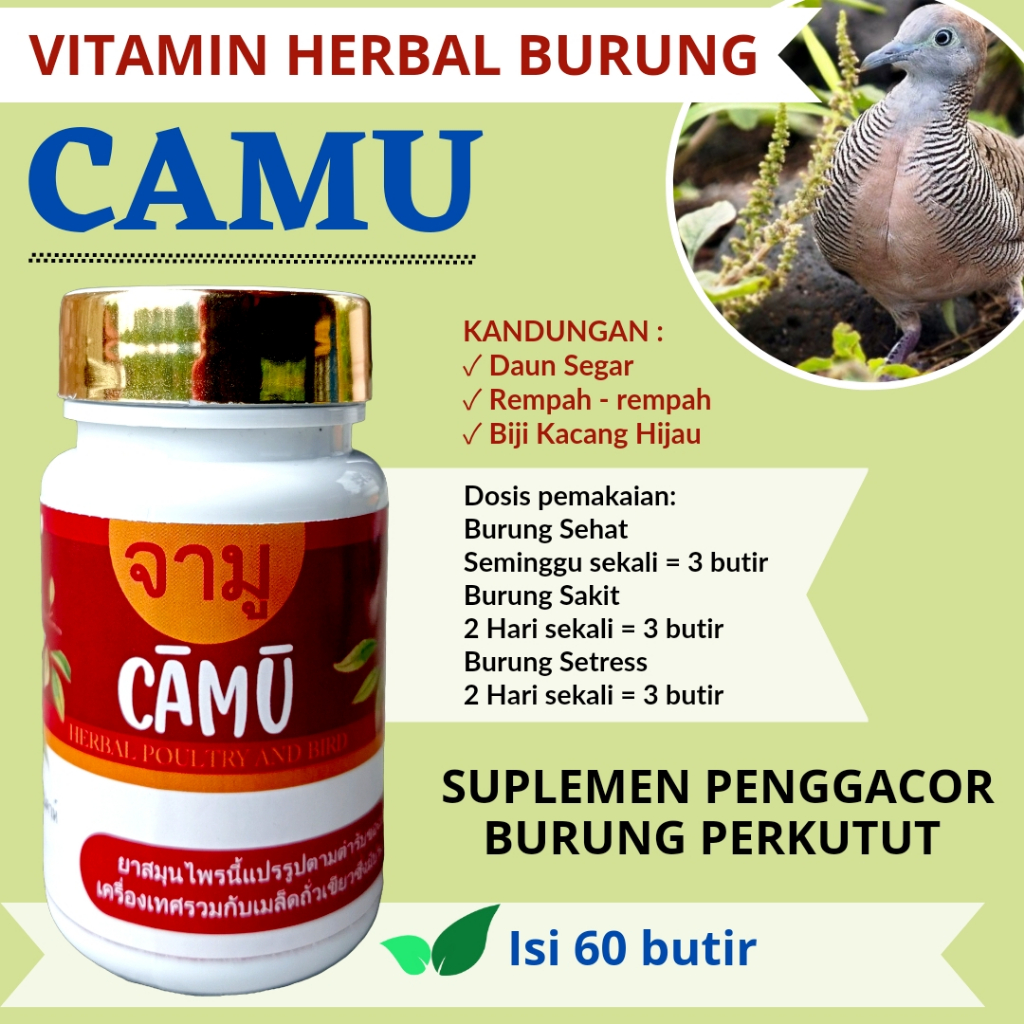 Camu Pil Perkutut Gacor Rajin Manggung Jamu Perkutut / Pil Ajaib / Bangkok / Katurangan / Lokal Isi 60 Butir