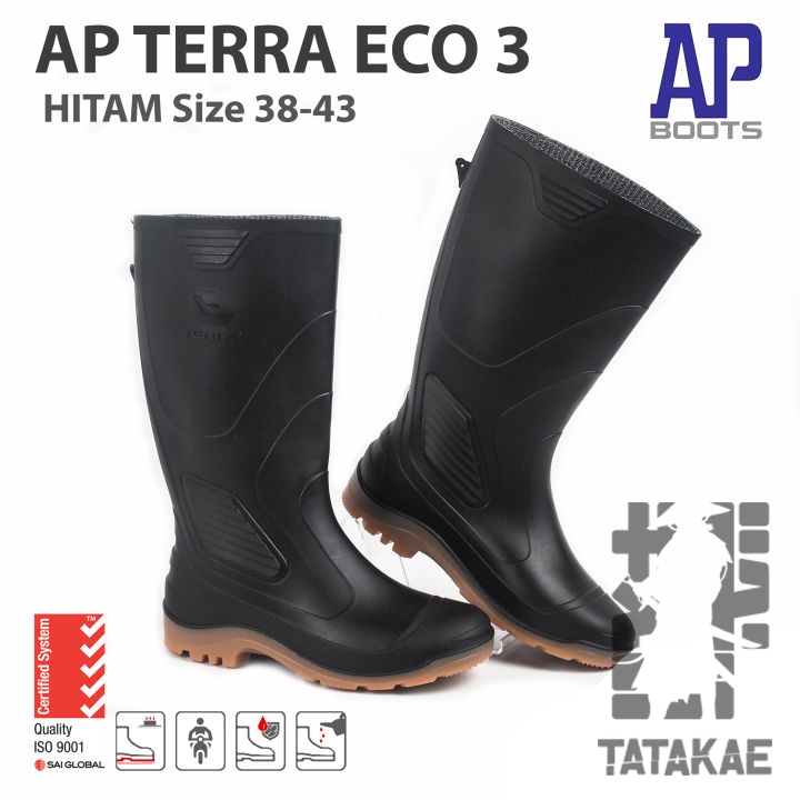 AP Boots Terra Eco 3 Hitam Sepatu Boot Karet Lentur Anti Slip Proyek Perkebunan Sawah Size 38-43