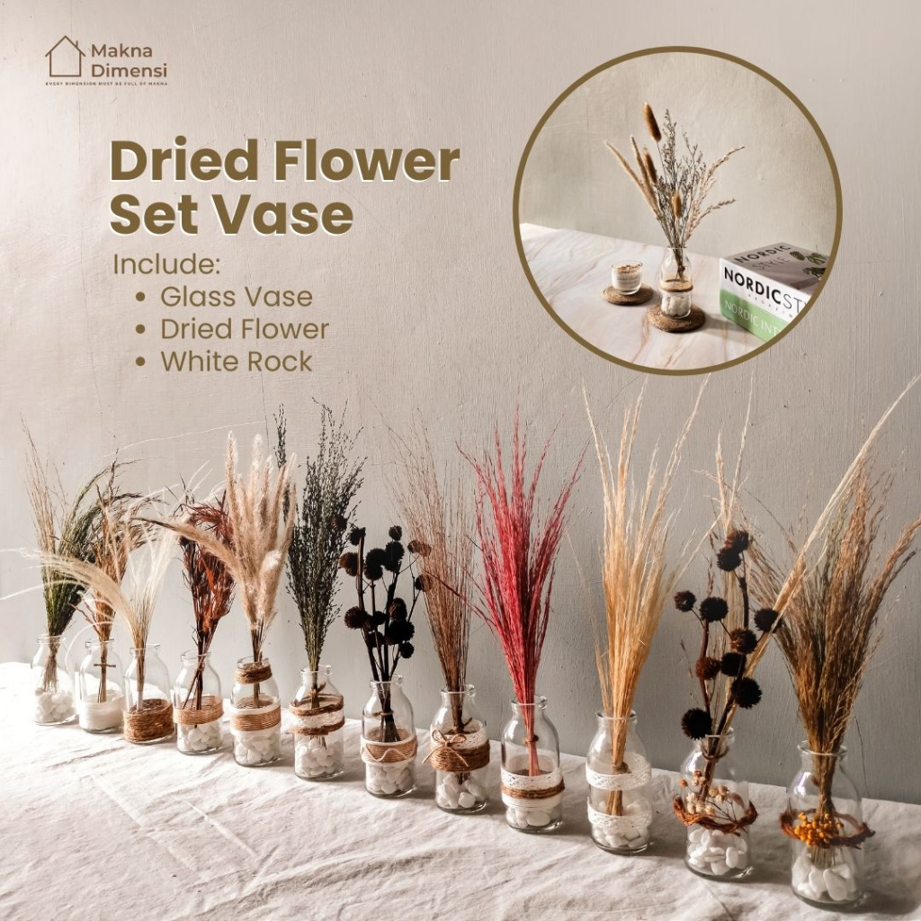1 set bunga aesthetic vas aesthetic vas bunga kering dried flower mini vase makna dimensi