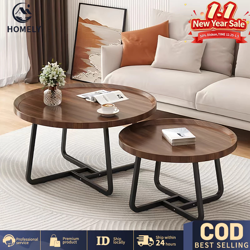 Meja Kopi Multifungsi 2 IN 1 Set Meja Ruang Tamu Meja Sudut & Meja Samping Ruang Tamu Modern