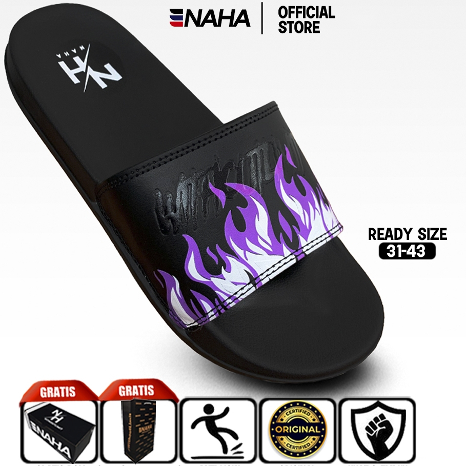 NAHA - Sandal Slop Pria Wanita Anti Slip Black Slipper