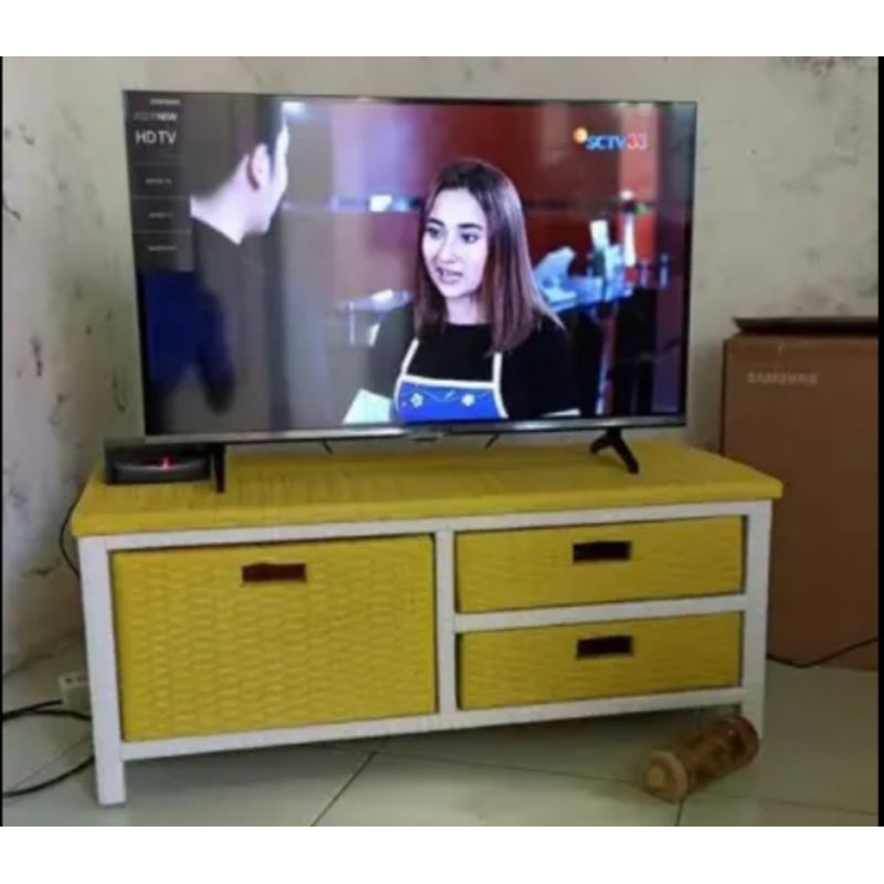 (REDY STOK) Meja Tv Rotan Sintetis Rak Laci 3 Rak Buku Susun