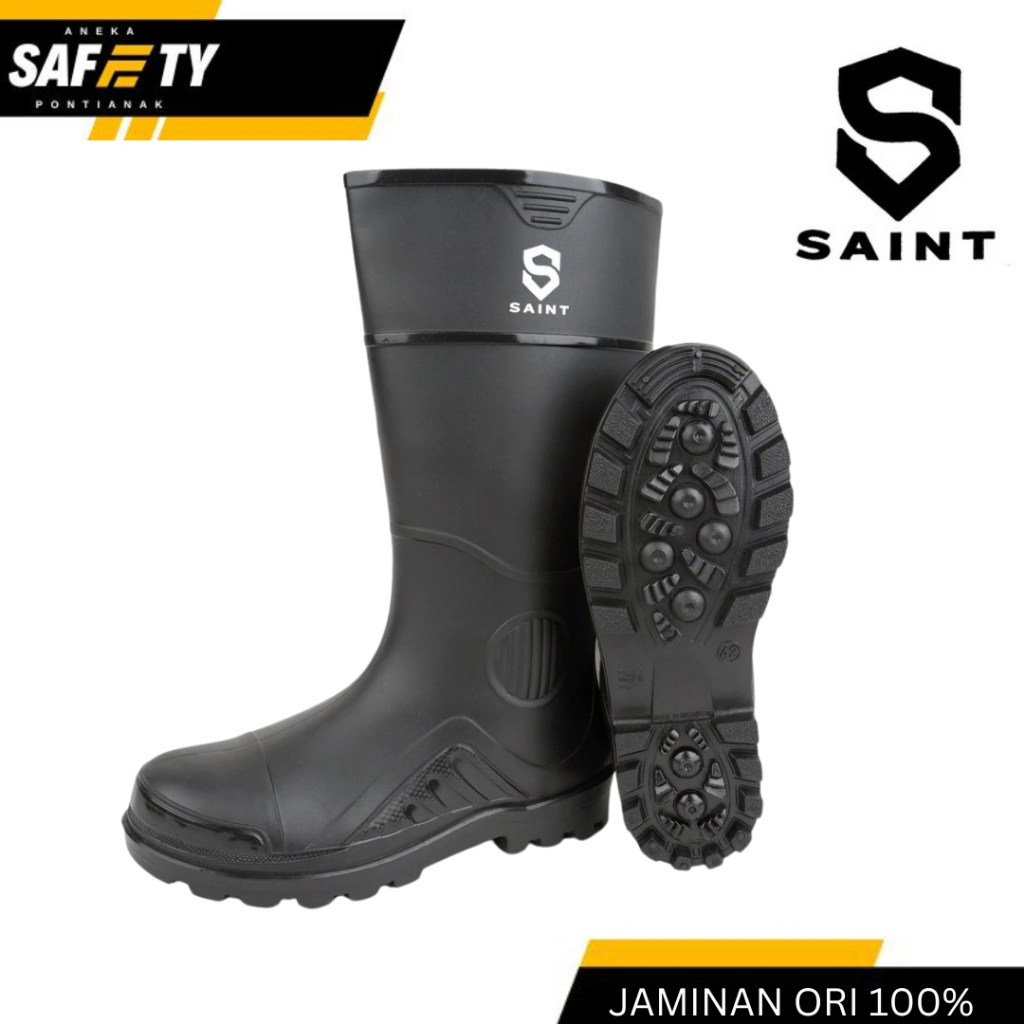 Saint Sepatu Boot Karet Tinggi Hitam - Anti Slip Lentur Lokal Karet