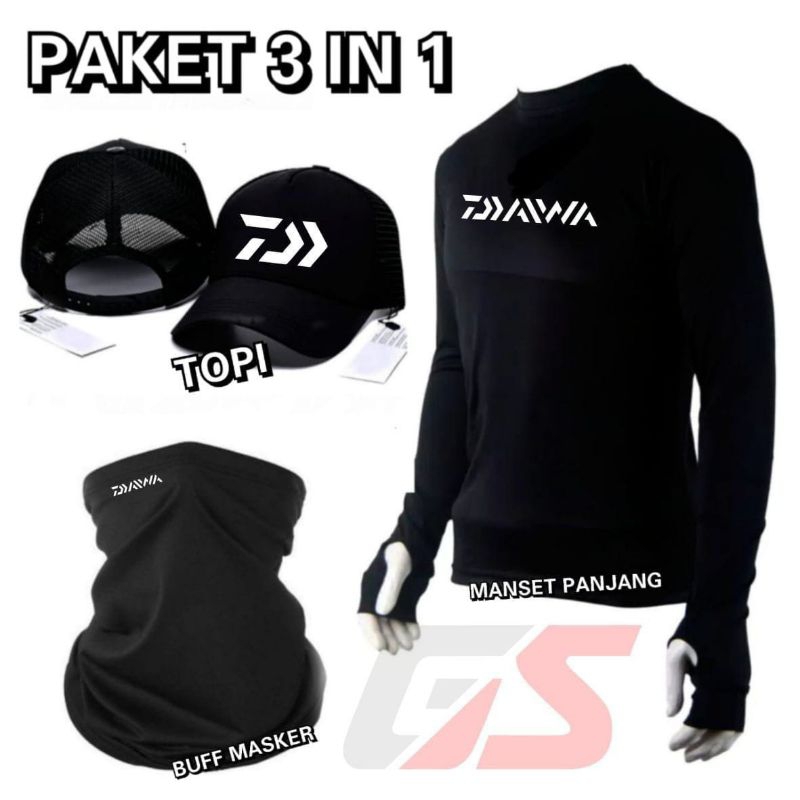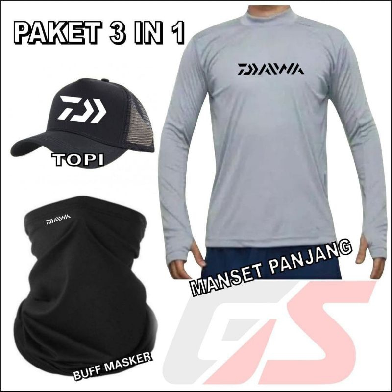 Paket Hemat 3 In 1 Lengkap Topi Mancing. Buff Masker Mancing Dan Jersey Daiwa Termurah