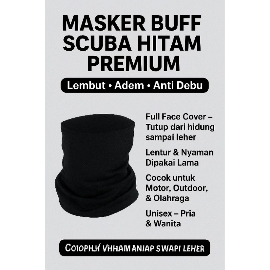 12 Pcs Masker Buff Bandana Multifungsi Motif Random / Hitam Polos