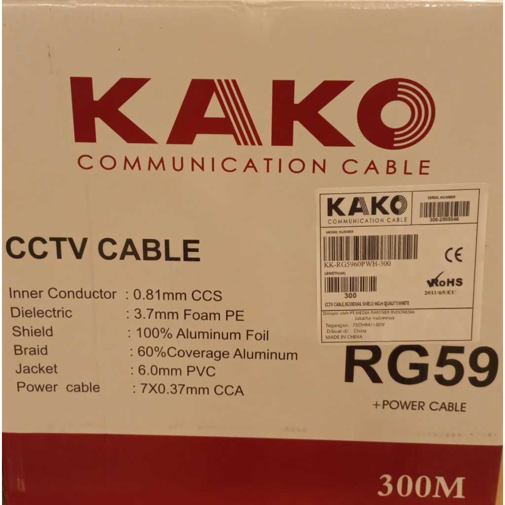 FLASH SALE Kabel COAXIAL CABLE CCTV RG59 PLUS POWER RG59POWER RG59P PUTIH 300M SUPPORT TARIKAN 300M KAKO