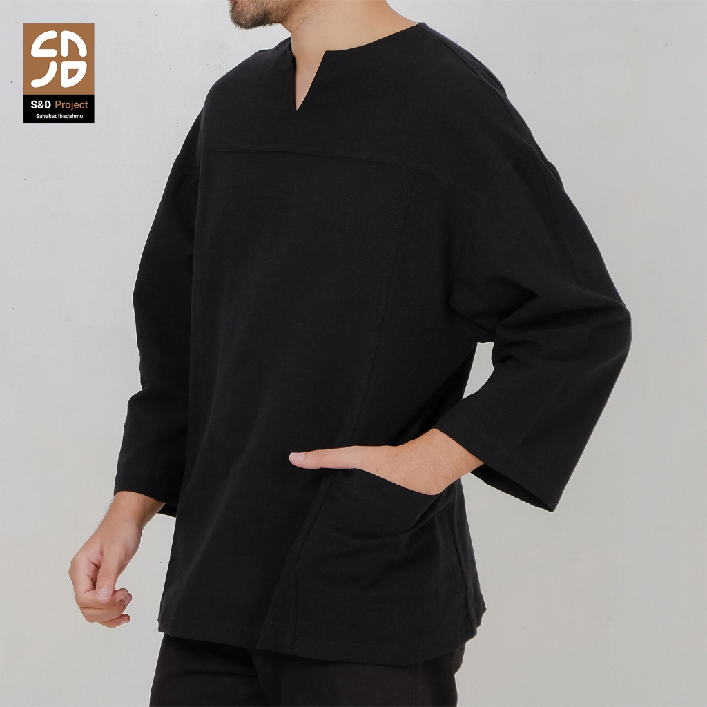 S&D Project Koko Muslim Ghassan Linen Fumiko Premium Hitam M-Xl Pria Dewasa Lengan Panjang Oversize