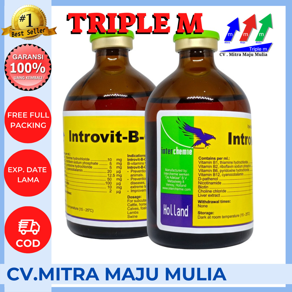INTROVIT B COMPLEX 100 ml Original (KONSENTRASI TINGGI DAN BIOTIN) - Obat Ternak