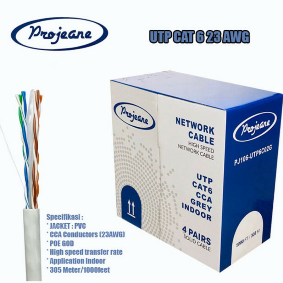 FLASH SALE Kabel Lan 305 Meter Utp Cat 6 Projeane CCA Grey 23AWG 1roll Kualitas Bagus Warna Abuabu