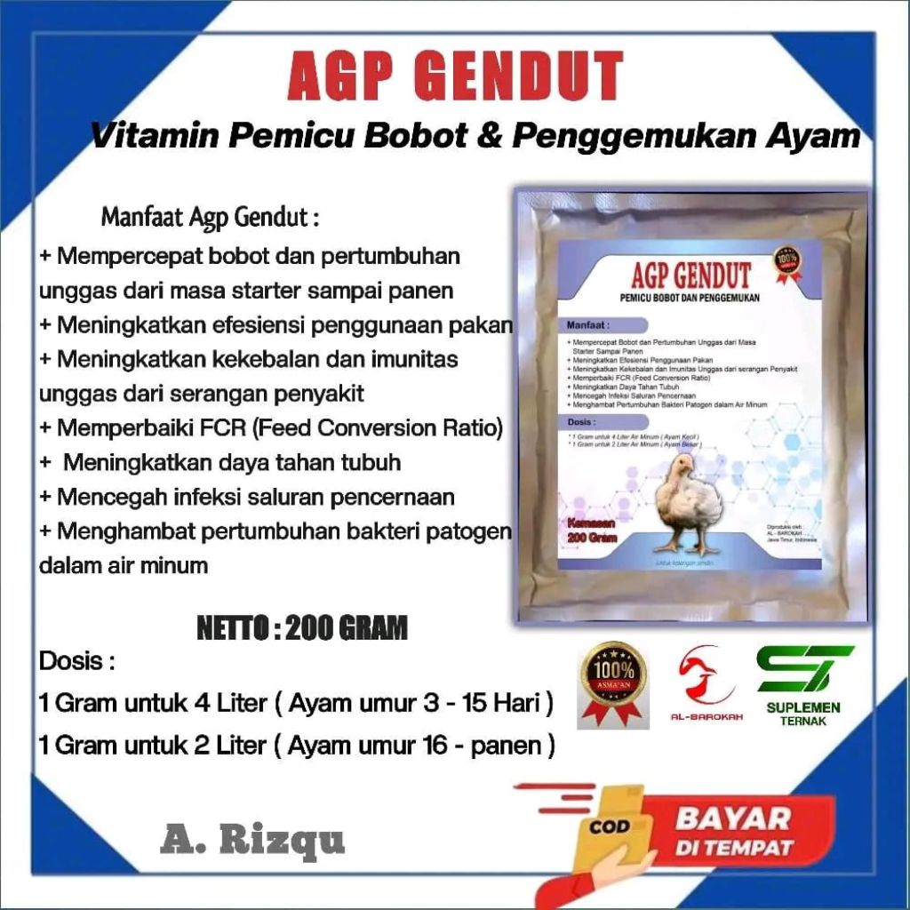 Paket Lengkap Agp Suplemen Lengkap Broiler - Dari DOC Masuk Sampai Panen (1 Paket untuk 1000 Ekor Ayam) - suplemen ayam