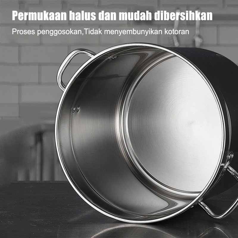 Lenodi Panci Dandang Ember Stainless Steel Tebal Extra/Panci Dandang Stainless/Panci Besar Tahan Kapasitas 12L/21L/34L