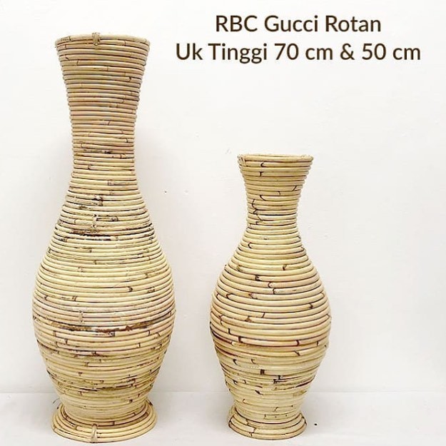 Guci Vas Bunga Untuk Hiasan Dekorasi Ruang Tamu Bahan Rotan Alami Natural 70CM dan 50CM
